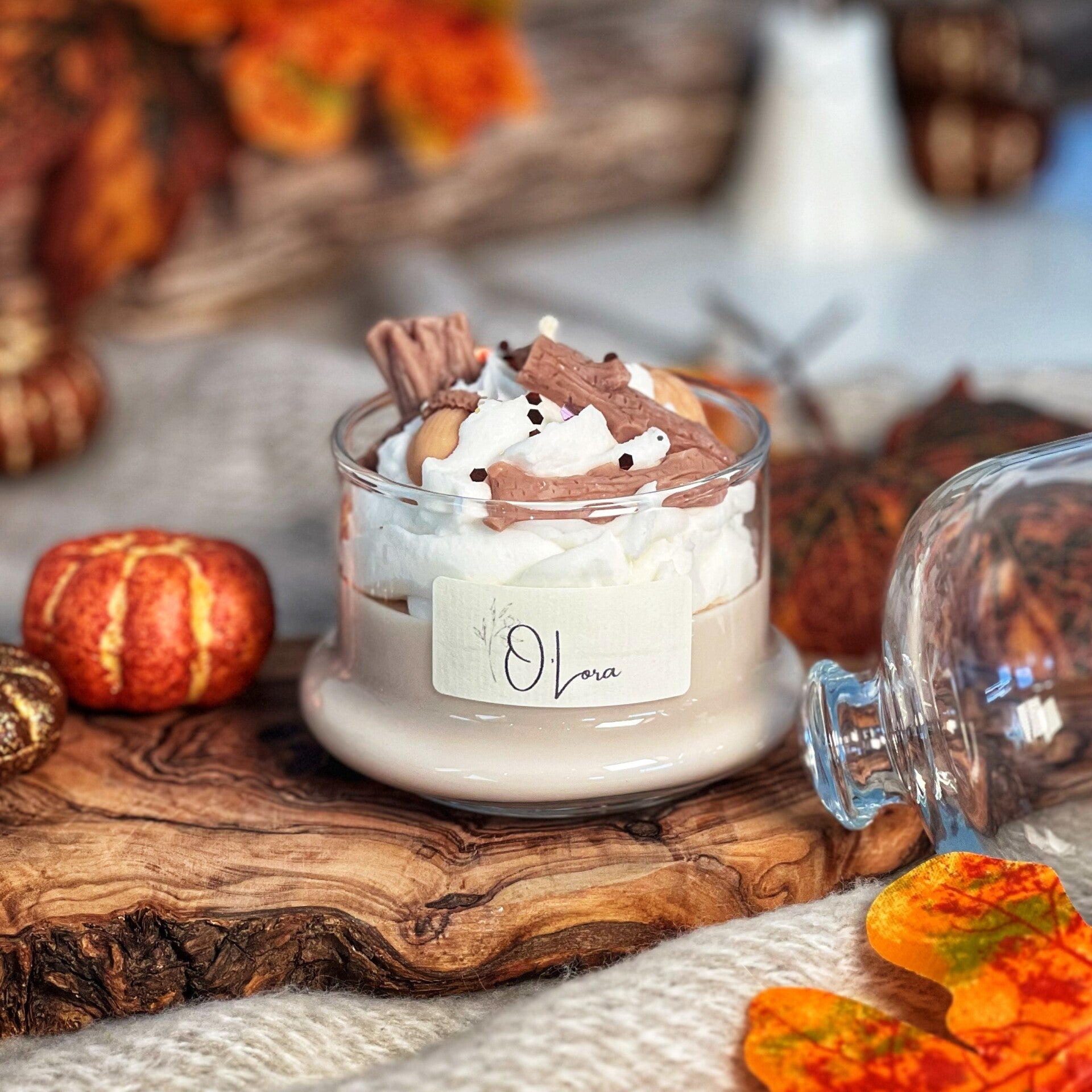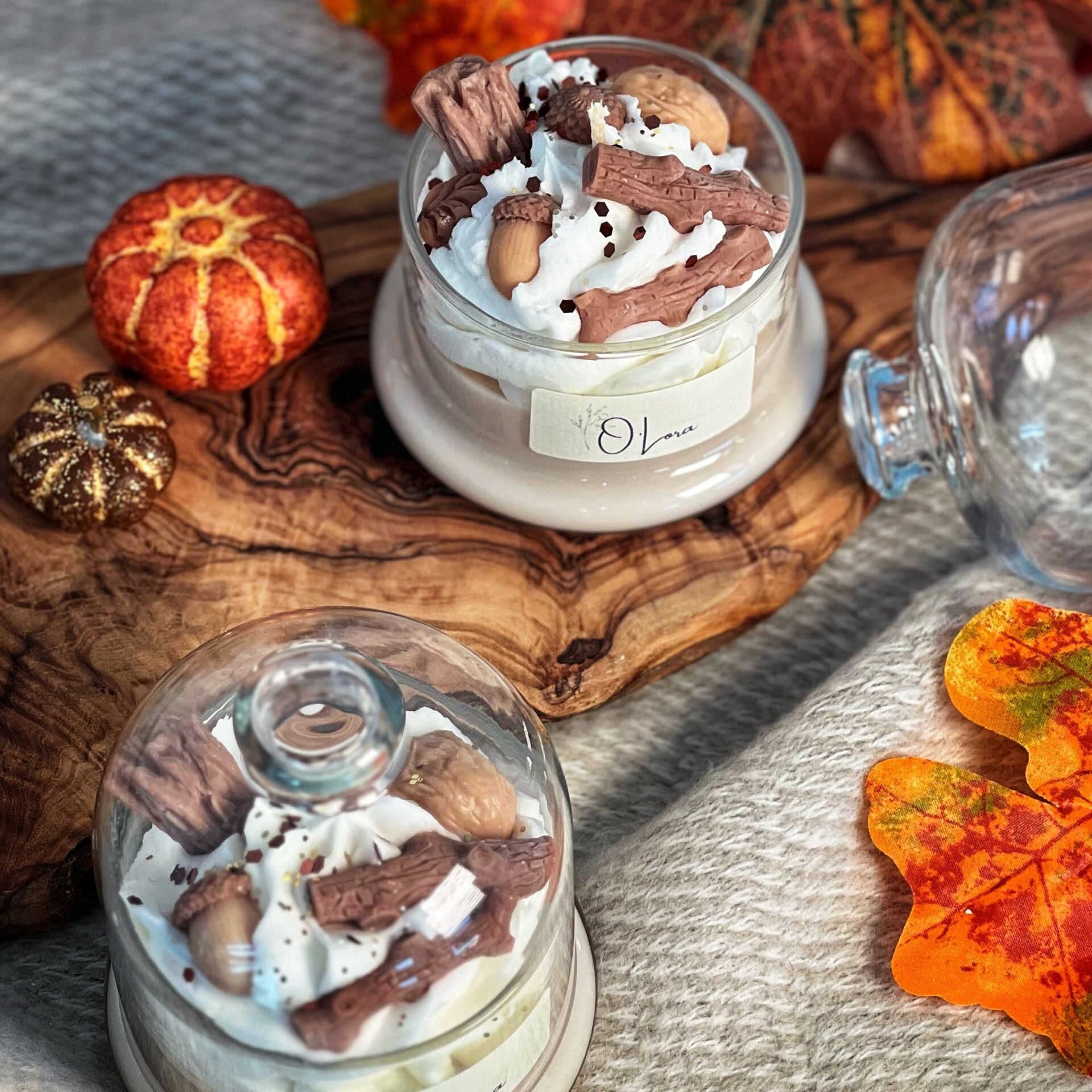 Haal de warmte van het najaar in huis met het stolpje "Warm Woods". De zachte tinten worden aangevuld met kleine details zoals herfstblaadjes, noten en boomstammetjes in wax – stuk voor stuk met de hand gegoten. De stolp zorgt ervoor dat dit niet alleen een kaars, maar ook een prachtig decorstuk is dat je interieur een stijlvolle, cosy uitstraling geeft.
