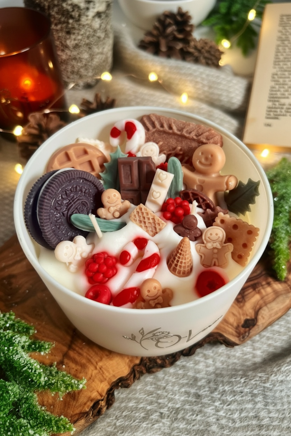 Deze royale kaars van 600 g is gevuld met de schattigste winterdetails zoals mini gingerbreadkoekjes, zuurstokken en wafeltjes. Een echte eyecatcher die niet alleen betovert met haar geur, maar ook met haar knusse, feestelijke uitstraling.