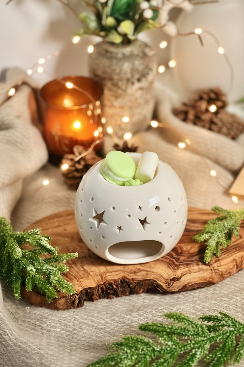 Plaats een wasmelt in het schaaltje bovenin, steek een theelichtje in de brander aan en geniet van de heerlijke geur en het sprankelende licht.